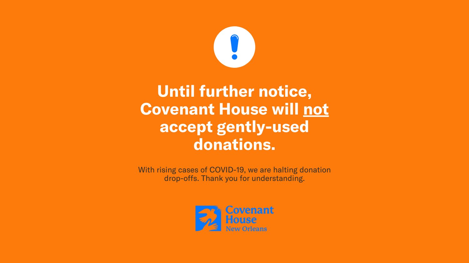 Covenant House Nola On Twitter Due To Rising Covid 19 Cases We Are Halting All Donation Drop Offs Until Further Notice Thank You For Understanding There Are Still Ways To Give To Our Residents